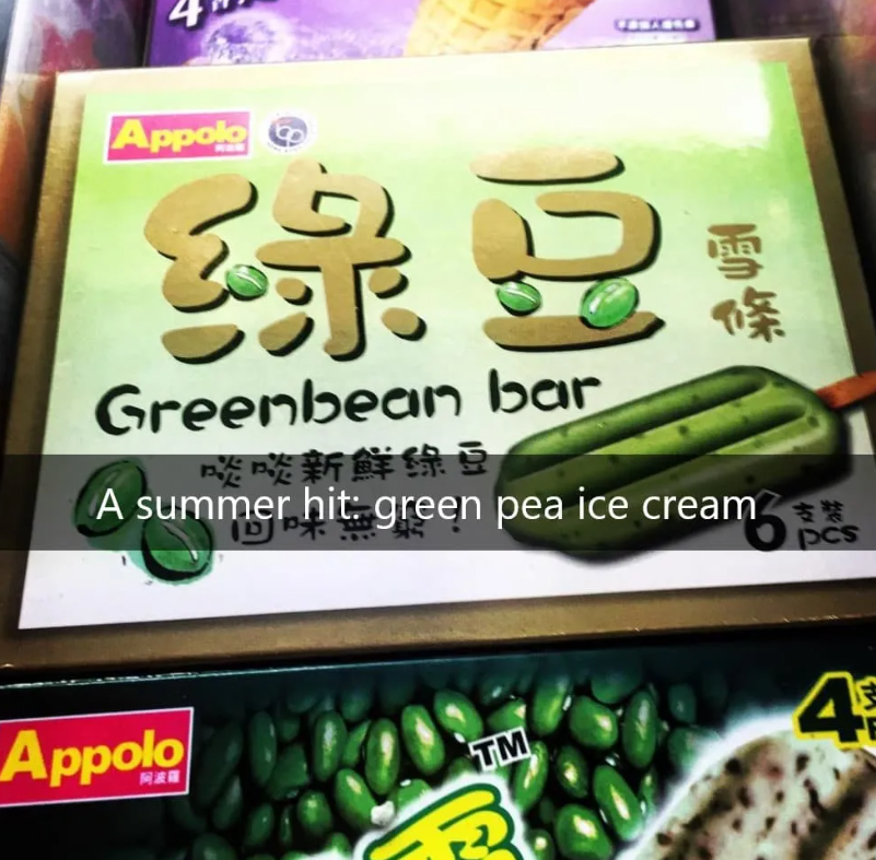 O sorvete nasceu na China, e graças ao Marco Polo, a sua receita viajou para a Europa. Além dos numerosos sabores regulares de sorvete que se podem apreciar na China, há também um monte de surpreendentes sabores. Por exemplo, de ervilhas verdes. Você ousaria?