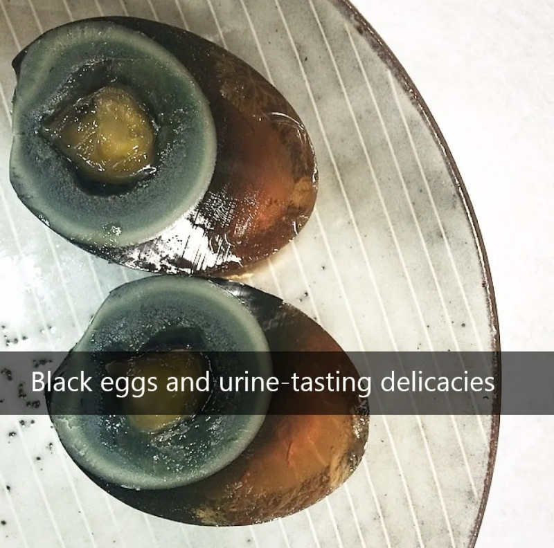 Calma, não fique enjoado ao ver isso. Mas, um ovo centenário é uma das iguarias mais populares da China. Um ovo de galinha fresco recebe uma cobertura generosa de chá, cinzas, sal, cal e barro antes de ser depois embrulhado em casca de arroz e palha. Depois, é enterrado debaixo da terra durante três a quatro meses. Fica assim!