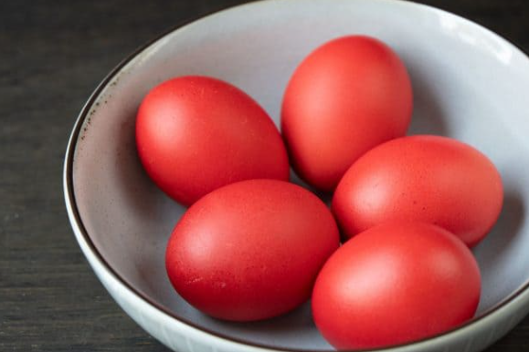 O ovo vermelho é uma tradição chinesa do aniversário de 2 anos. O vermelho é uma cor muito importante na cultura chinesa por simbolizar a sorte, e o ovo representa vida e começo. Então, eles tingem ovos de vermelho para essa comemoração.