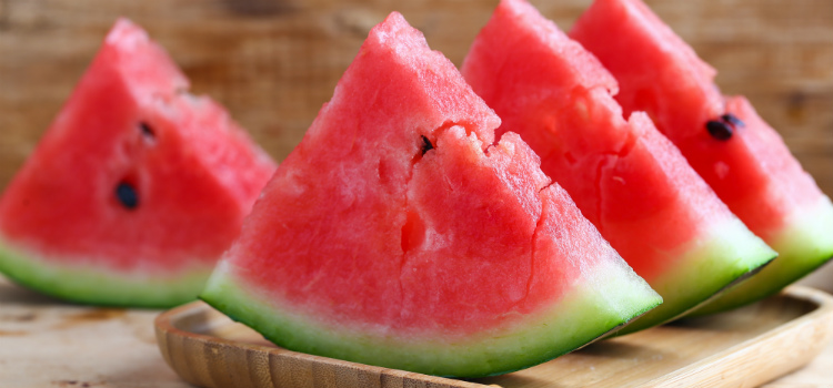 A melancia é rica em água, sendo excelente para quem não bebe a quantidade necessária de água todos os dias. Ela é também um excelente diurético, facilitando o fluxo de urina para fora dos rins, sem deixar resíduos no mesmo.