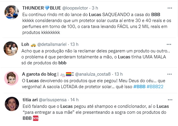 Muita gente se divertiu com o VT do “Barão da Roubadinha” – apelido que a produção do Big Brother Brasil deu a Lucas, por acumular produtos da casa em suas malas. Entretanto, o exagero do brother pegou mal, e a produção pediu que o participante devolvesse o excesso.