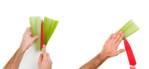 - Comece pelas laterais (mais finas) da planta – com uma faca, corte toda a extensão;