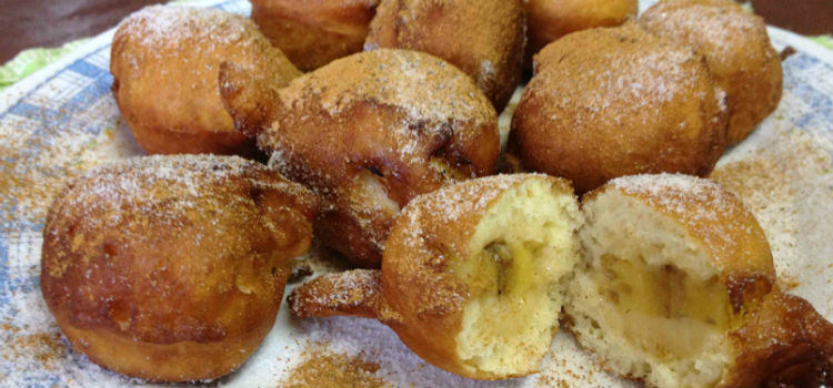 E que tal fazer um bolinho de chuva com fruta? Essa também é uma das versões mais tradicionais. A banana dá um toque especial à receita.