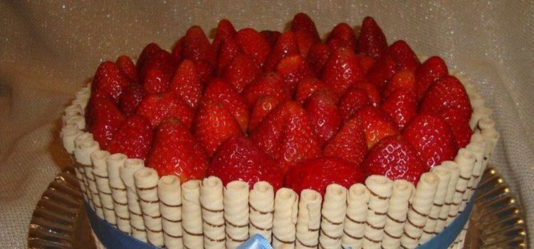 - No dia seguinte, desenforme o bolo onde deseja montá-lo, cubra-o com chantilly, cole os tubetes em toda a sua volta e decore-o com morangos. Finalize com uma fita de cetim e pronto.