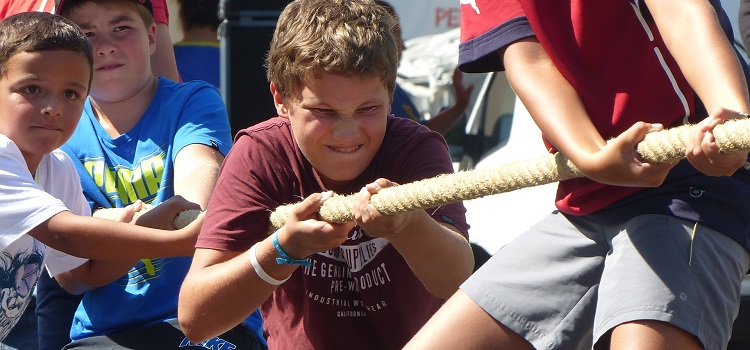 Atividade folclórica que ensina a importância da cooperação e do trabalho em equipe, cabo de guerra exige apenas uma corda e dois grupos adversários, que devem puxar a corda além da linha demarcada no meio. O grupo que conseguir puxar a corda primeiro vence a rodada.