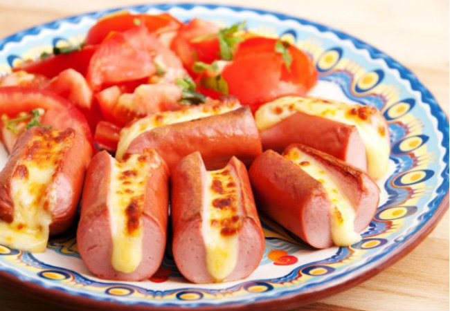 A salsicha recheada para o cachorro-quente pode ser de duas maneiras. Comprar pronta ou então recheá-las. Parece complicado, mas não é. Basta ferventar as salsichas, fazer um corte no meio (sem separá-las) e, ainda quente, acrescentar o queijo.