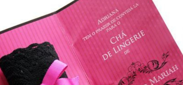 Entre as opções estão sutiãs, calcinhas, espartilhos, corpetes, conjuntos, biquínis, camisolas e baby dools. Selecione modelos, cores preferidas, estampas e tamanhos. Depois separe os nomes das lojas, endereços e coloque junto no convite. Ah, e não inclua nada muito caro, pois as convidadas ainda terão que investir no presente de casamento.