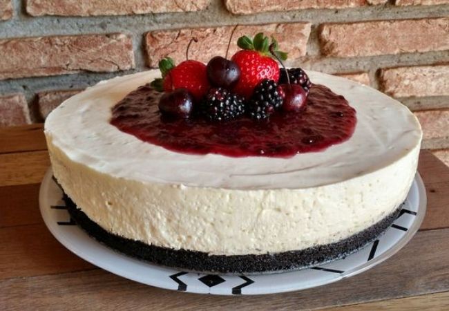 Sirva geladinha: cheesecake com Oreo e frutas vermelhas