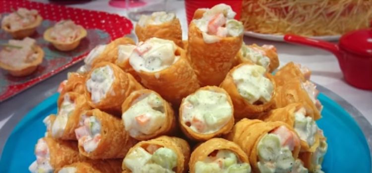 A massa do canudinho é frita e tem um sabor tipo a massa de pastel. Geralmente era comprada pronta porque não era das mais práticas para fazer. Dentro do canudinhos era colocada a tradicional maionese de batatas com legumes, mas algumas pessoas colocavam um creme de atum ou sardinha. Além do canudinho, tinha também a barquinha com os mesmos tipos de recheio.