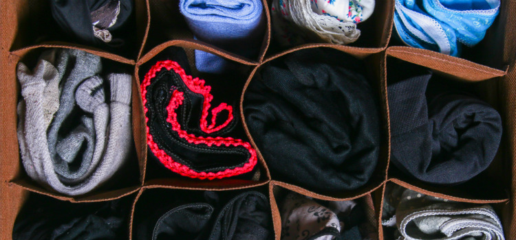 - Nas gavetas, coloque os shorts, saias e peças íntimas;