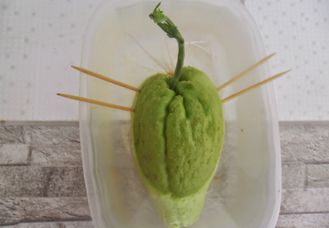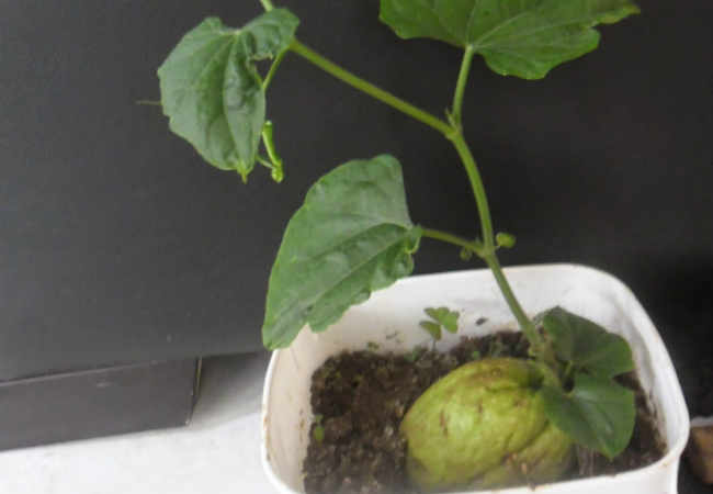 Para ter esse chuchu, pode comprar um no mercado e deixar em pé dentro de um jarrinho ou copo com água, com a parte de baixo para cima. Depois de uma ou duas semanas ele vai começar a brotar.