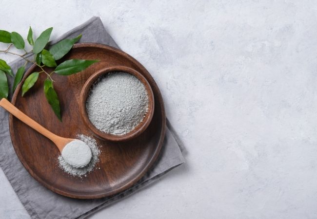 Depois, pegue sua argila em pó e misture com água, aos poucos, até formar uma pasta amolecida, fácil de passar no couro cabeludo. Em média, 2 colheres e meia de chá é o bastante para o couro cabeludo todo.
