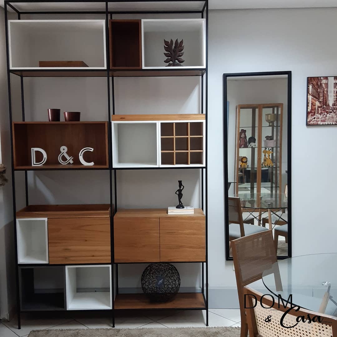 Se você tem cômodos bem amplos e precisa de móveis proporcionais, mas não quer peças com visual pesado, com certeza a estante de metal é uma ótima escolha.
