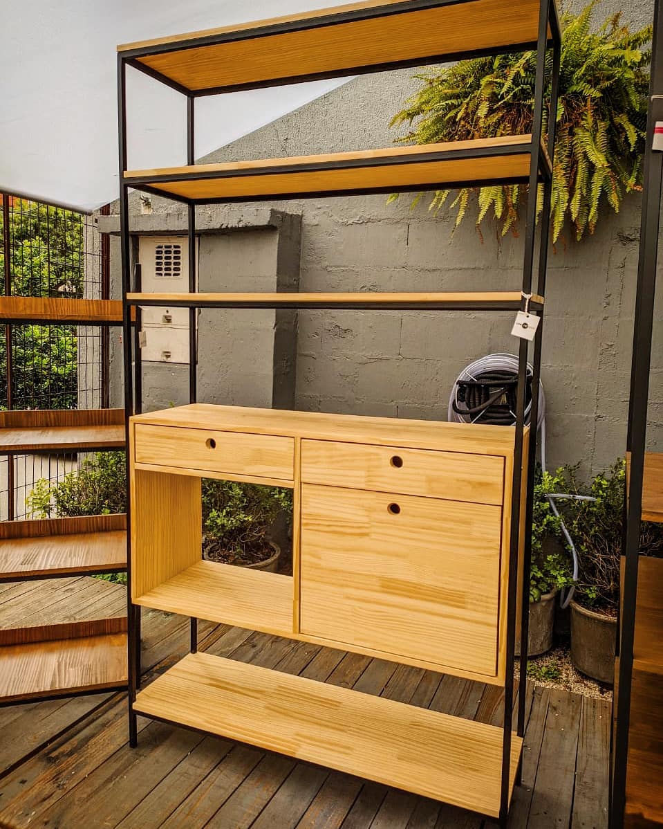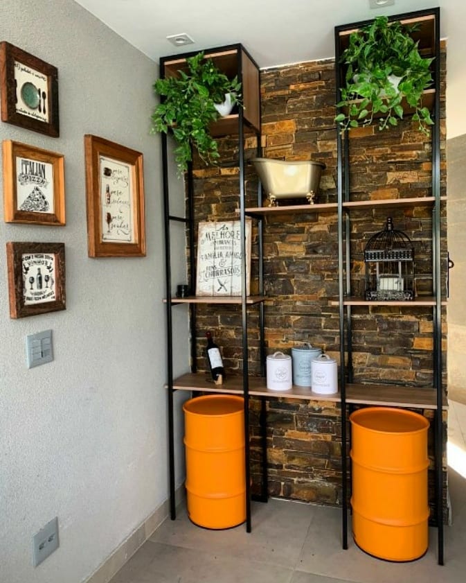O estilo mais comum para usar esse modelo de estante é o industrial-rústico. A imagem abaixo fala por si só.