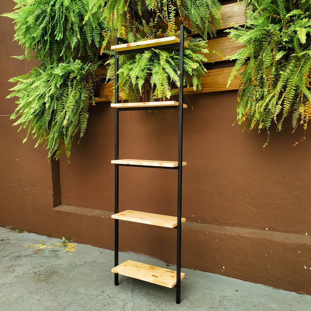 Se você está buscando uma estante para suas plantas, com certeza um modelo de metal com madeira vai ficar divino.