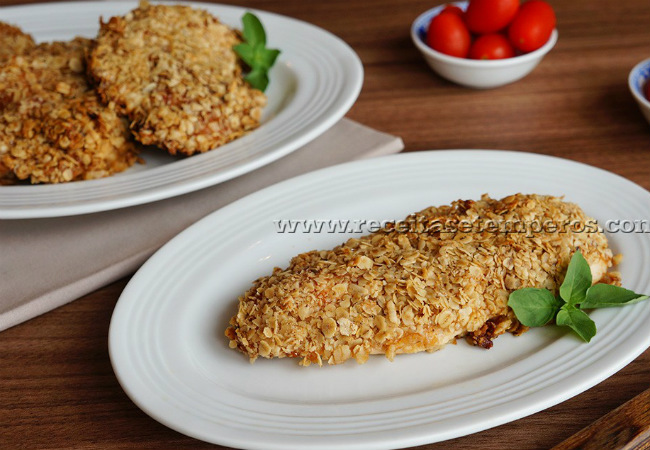 Embora seja frito, esse filé de frango à milanesa na aveia possui uma característica saudável, por conta desse cereal rico em carboidratos complexos, fibras e proteínas. Vale lembrar que esses nutrientes conseguem resistir ao processo de fritura, o que faz com sejam absorvidos pelo organismo mesmo assim.