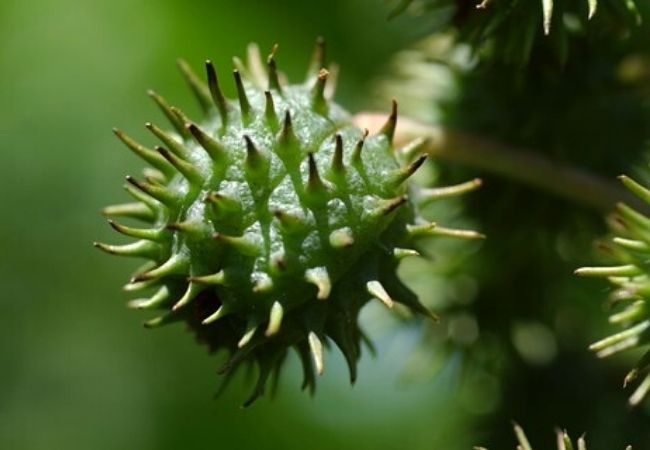 Muito comum nos terrenos baldios e em locais repletos de mato, a mamona é tipicamente brasileira e representa perigo se for ingerida. Afinal, ela é extremamente tóxica e apenas 8 frutas dessas levam uma criança à morte. Causa sintomas iniciais como diarreia, vômito e dor abdominal.