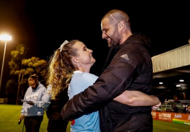 Assim que a partida terminou, Matt Stonham, namorado de Rhali, entrou no campo, se ajoelhou e pediu a amada em casamento.