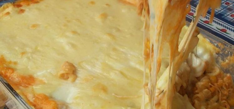Quando quiser servir um belo prato de forno no almoço ou jantar, essa versão compartilhada do Tudo Gostoso, com molho de frango, é uma ótima pedida. Fica parecendo uma lasanha.