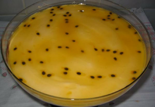- Coloque a mousse em um recipiente e leve à geladeira, decore com as sementes do maracujá.