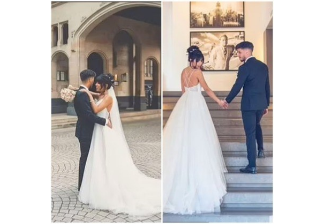 O plano dela não envolveu apenas um fotógrafo e o ator que fez papel de noivo. Como tinha de ser convincente, Sarah envolveu as amigas e tudo.