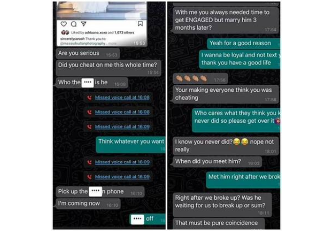 É claro que o plano deu certo. Logo o ex veio tirar satisfações. “Enquanto estava comigo você precisava de tempo para pensar em se casar e agora se casou com ele em três meses? Isso não pode ser coincidência”, disse o ex, indignado com a rapidez do casamento em tão pouco tempo de relação e duvidando que ela o tivesse traído.