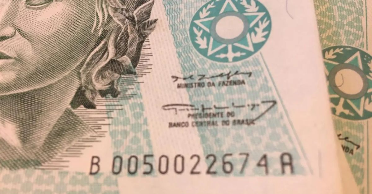 A nota conta com a sequência “BA” no seu registro de série e com as assinaturas de Pedro Malan e Gustavo Loyola. Ambos já presidiram o Banco Central.