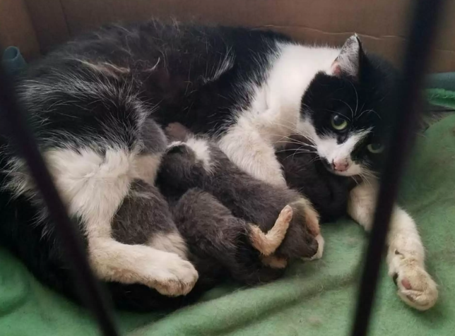 A sorte dessa mamãe gata e de sua ninhada de gatinhos é que as pessoas da vizinhança viram ela andando por aí e sua aparência de quem tinha acabado de dar à luz filhotinhos.