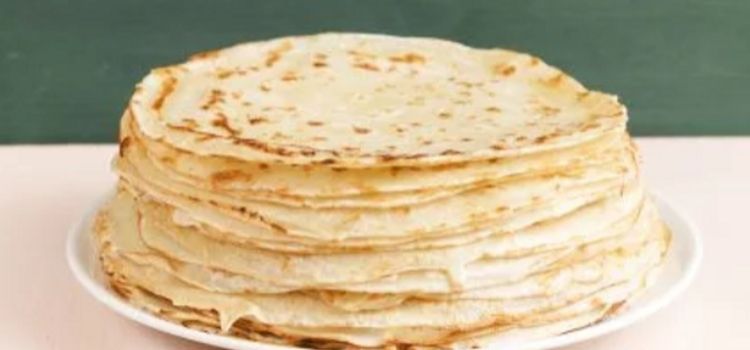 - Aqueça uma frigideira antiaderente untada com manteiga. Quando ela estiver bem quente, despeje uma concha da massa e gire a frigideira para que ela se espalhe;
