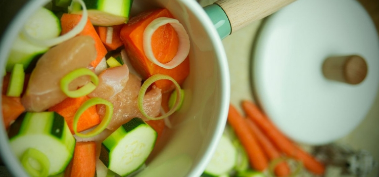 - Lave bem os vegetais, descasque e corte em pedacinhos para facilitar o cozimento;