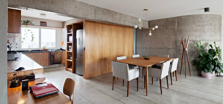 Uma das melhores combinações desse material é a de cimento queimado com madeira. Esse arranjo fica rústico e sofisticado. Você também pode substituir o pigmento preto por um pigmento colorido para deixar o ambiente mais alegre sem perder a elegância do cimento queimado.
