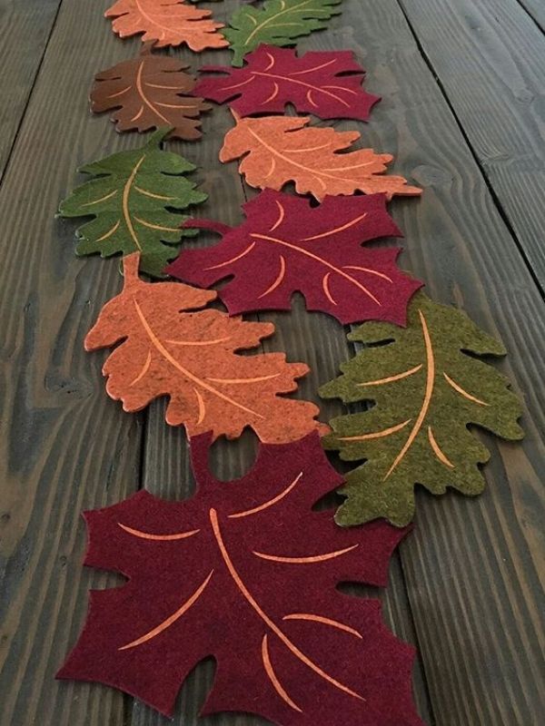 Nos meses de outono essa pode ser a sua passadeira de mesa da estação, linda, toda recordada no formato de folhas.