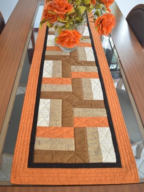 6. Passadeira de mesa patchwork laranja