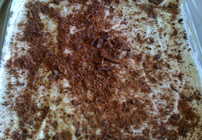 Essa é uma versão diferente para quando você fez aquele bolo que grudou na forma ou que não cresceu muito. Dê a ele uma nova função, a de pavê de bolo. Você só precisa fazer o creme de leite em pó comum e depois, em vez das bolachas, vai usar as fatias da massa de bolo para intercalar com o creme.