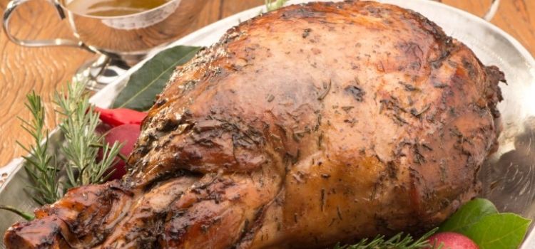- Depois de assado, passe o pernil para uma travessa de servir e reserve o caldo que se formou no cozimento na própria assadeira, para o preparo do molho;