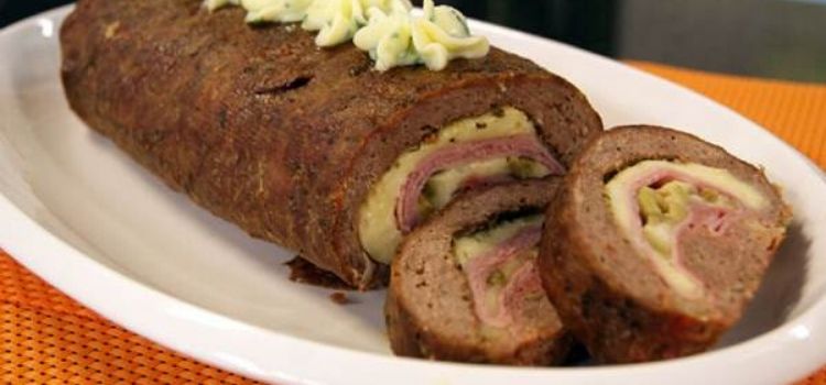 Outra sugestão de carne, dessa vez vermelha, é um belo rocambole recheado com presunto e queijo. É um prato prático e econômico, que costuma agradar a todos. No recheio também pode adicionar azeitonas, cenouras e outros vegetais picadinhos para deixar mais colorido. Confira a sugestão compartilhada do Receitas de Comidas.