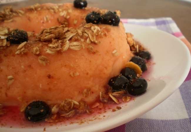 Essa receita é ainda mais simples do que todas as outras porque só leva o papaia, gelatina sem sabor e creme de leite light, mais nada. Claro, depois que ele já estiver bem geladinho, antes de servir, vale a pena decorar com uma calda de mel e mirtilos e polvilhar com granola.