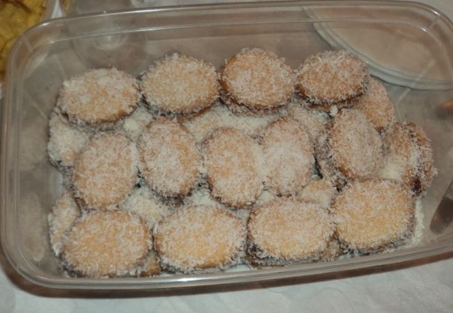 - Passe o biscoito pelo creme de leite e depois no coco, como se fosse empanar.
