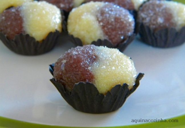 Mais uma sugestão bem interessante de sabores é fazer seu docinho com brigadeiro de chocolate e brigadeiro de limão. É bem simples de fazer e essa receita rende 30 unidades, também do Guia da Cozinha.