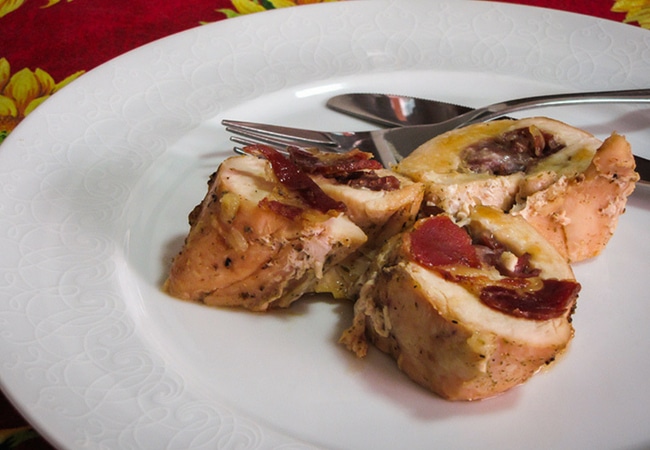 Outro prato entre as receitas com peito de frango que fica uma delícia e tem apresentação mais sofisticada é esse com recheio de gorgonzola, também compartilhado do Cozinha Travessa.