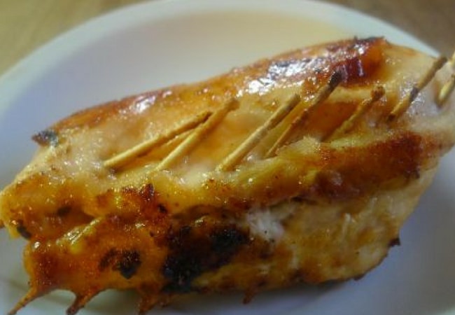 - Depois desse tempo, retire os peitos do tempero e recheie a gosto com gorgonzola, colocando o queijo naquele buraquinho que você fez no começo.