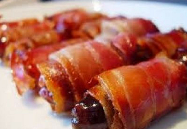 Parece uma combinação estranha, mas a verdade é que os opostos se atraem. A tâmara, bem doce, faz um ótimo casamento com o bacon salgado. Um fica enrolado no outro e vão ao forno juntos para liberarem o sabor. Um ótimo aperitivo.