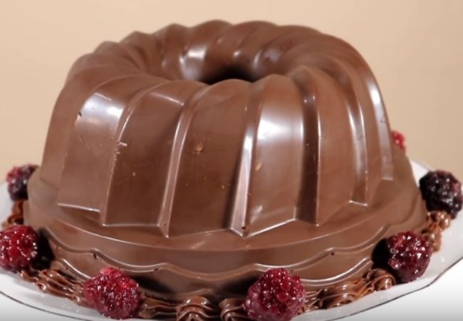 Se você não quiser fazer o bolo bombom coberto com uma generosa camada de chocolate, pode preparar uma cobertura que simule essa camada, como por exemplo, a cobertura de ganache. Você pode fazer com chocolate ao leite, branco ou meio amargo, conforme seu gosto. Veja as ideias para cobertura e também para massa e recheio do seu bolo.