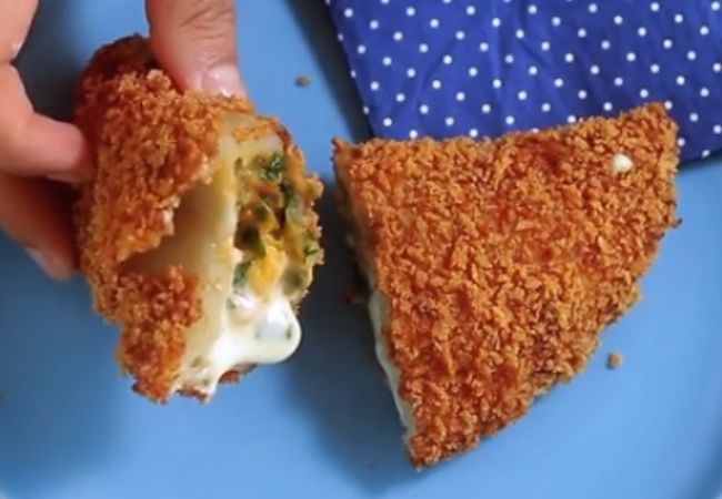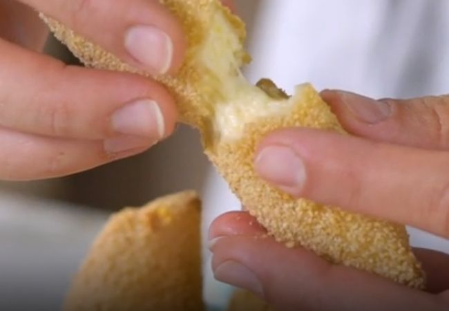 O recheio é bem cremoso, enquanto a massa é mais fina, porém macia e com uma camada ligeiramente crocante por fora, já que os salgadinhos são passados em uma camada de ovo com pão ralado antes de serem fritos.