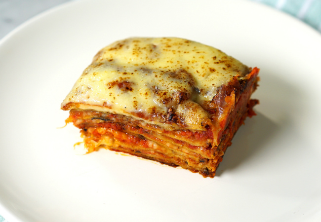 Berinjela: 2 unidades sem casca, em fatias finas, no sentido do comprimento;