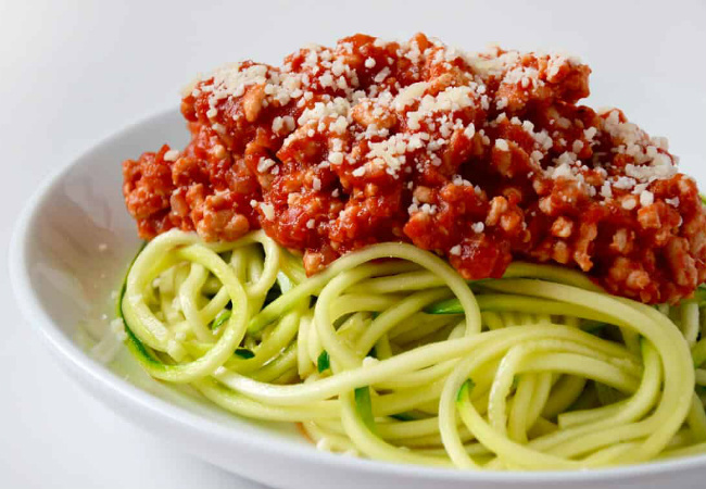 - Coloque o macarrão de abobrinha no prato, cubra com seu molho favorito e aproveite!