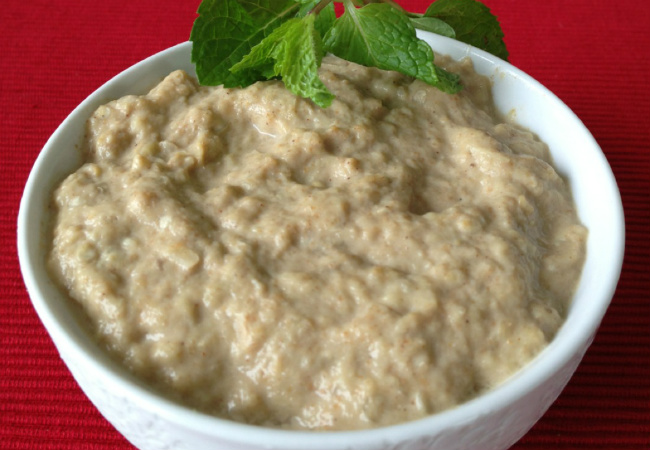 Também chamada de babaghanoush, essa pastinha árabe é sucesso para comer com palitinhos de cenoura.