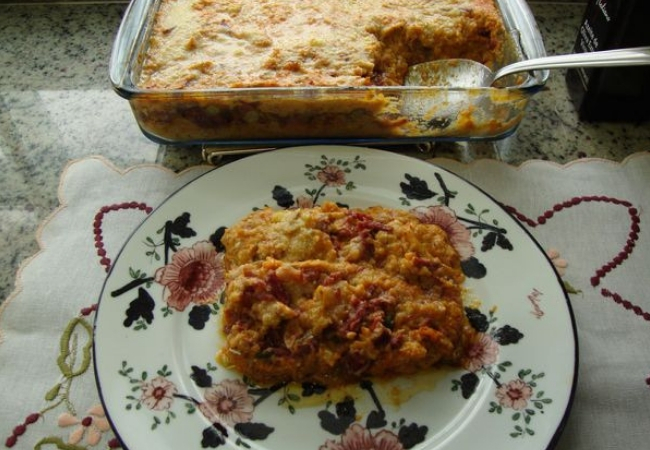 Essa opção é aquela delícia que você faz para o almoço de domingo e prepara um pouco a mais para levar de marmita na segunda. É um escondidinho saudável e completo, só precisa de uma salada fresca para comer bem e economizar fora de casa.