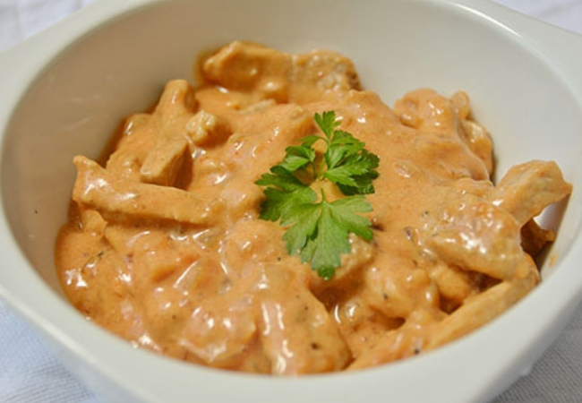 O strogonoff é outra receita muito fácil de fazer na noite anterior e deixar pronta para levar de marmita para o almoço. Faça junto um arroz integral e antes de sair de casa rale uma cenoura e fatie um tomate ter uma refeição completa.