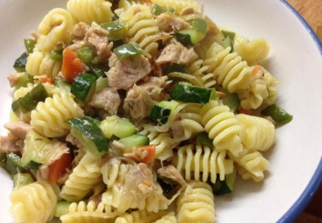 Essa é outra opção de receitas para marmita que funciona muito bem. O macarrão é o seu carboidrato, o atum é a proteína e os legumes são as vitaminas e minerais que precisa para começar a tarde com toda energia. Além do mais, é muito prático de preparar e pode até comer frio, como uma salada.